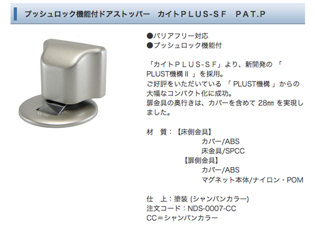 中尾製作所【プッシュロック機能付ドアストッパー】カイトPLUS-SF
