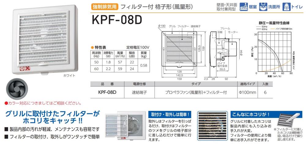 バクマ【強制排気用 フィルター付格子形(風量形) KPF-08D】KPF-08D~他