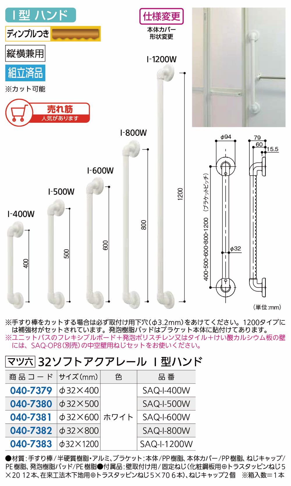BAUHAUS(バウハウス)【32ソフトアクアレール I型ハンド】SAQ-I-400W(040-7379)~他