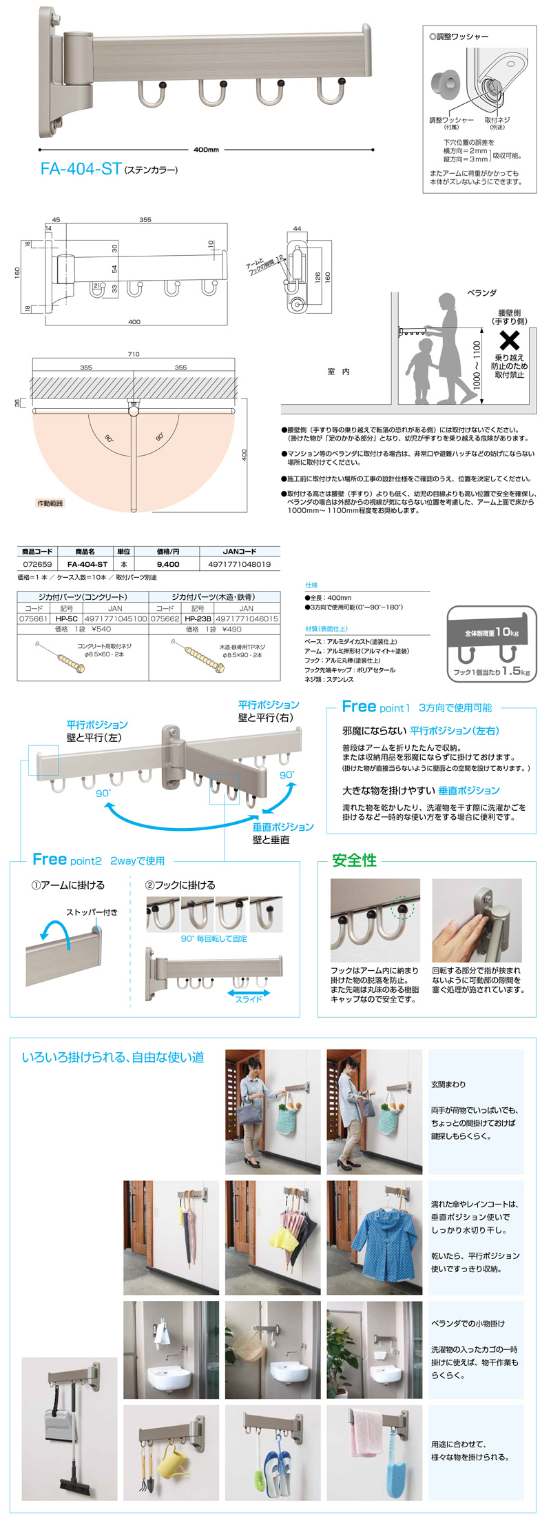 材質 ベース : アルミダイカスト(塗装仕上) アーム : アルミ押形材(アルマイト+塗装) フック : アルミ丸棒(塗装仕上) フック先端キャップ : ポリアセタール ネジ類 : ステンレス