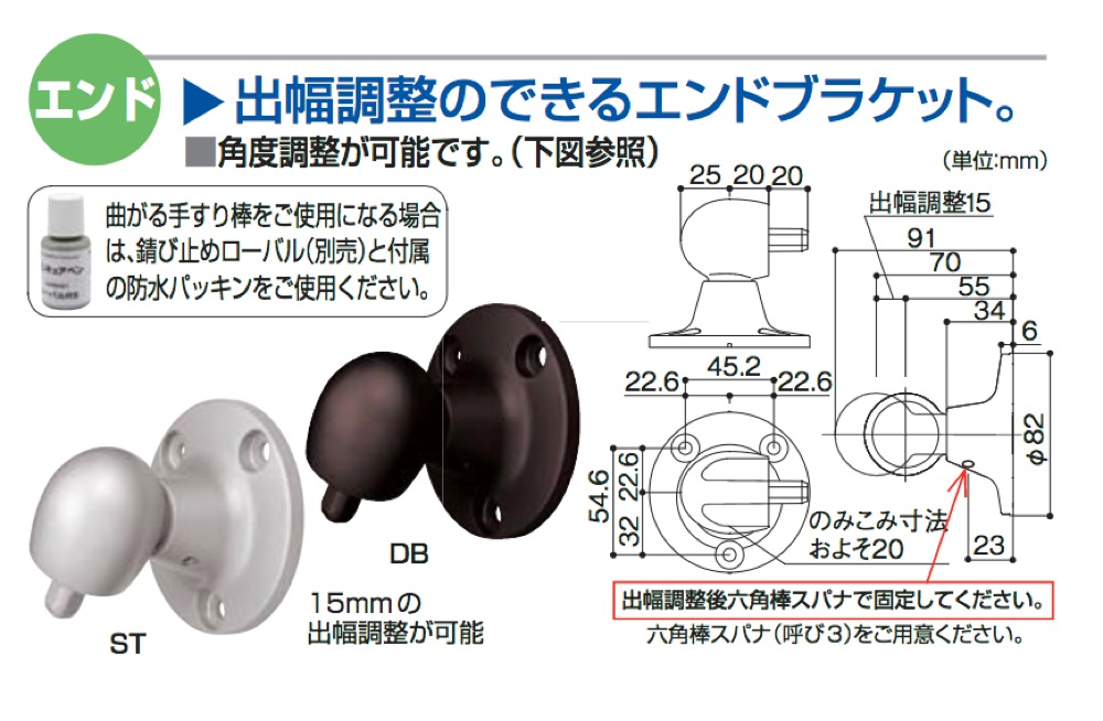 出幅調整のできるエンドブラケット。