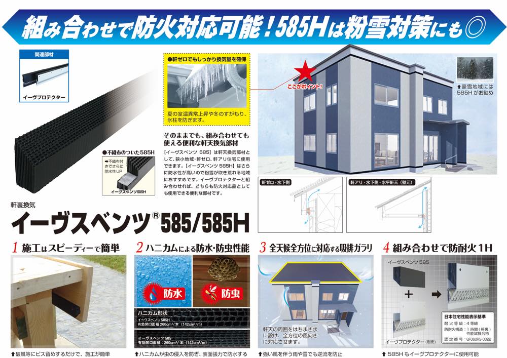 軒天換気部材として、狭小地域・軒ゼロ、軒アリ住宅に使用。