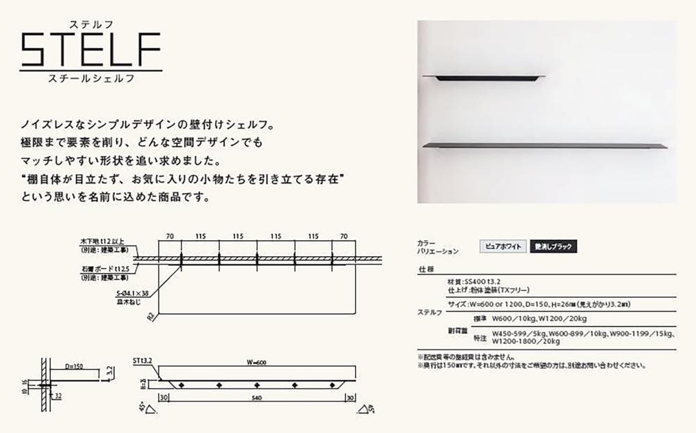 カツデン【スチールシェルフSTELF(ステルフ)】W600×D150×H26mm(見えがかり3.2mm)~他