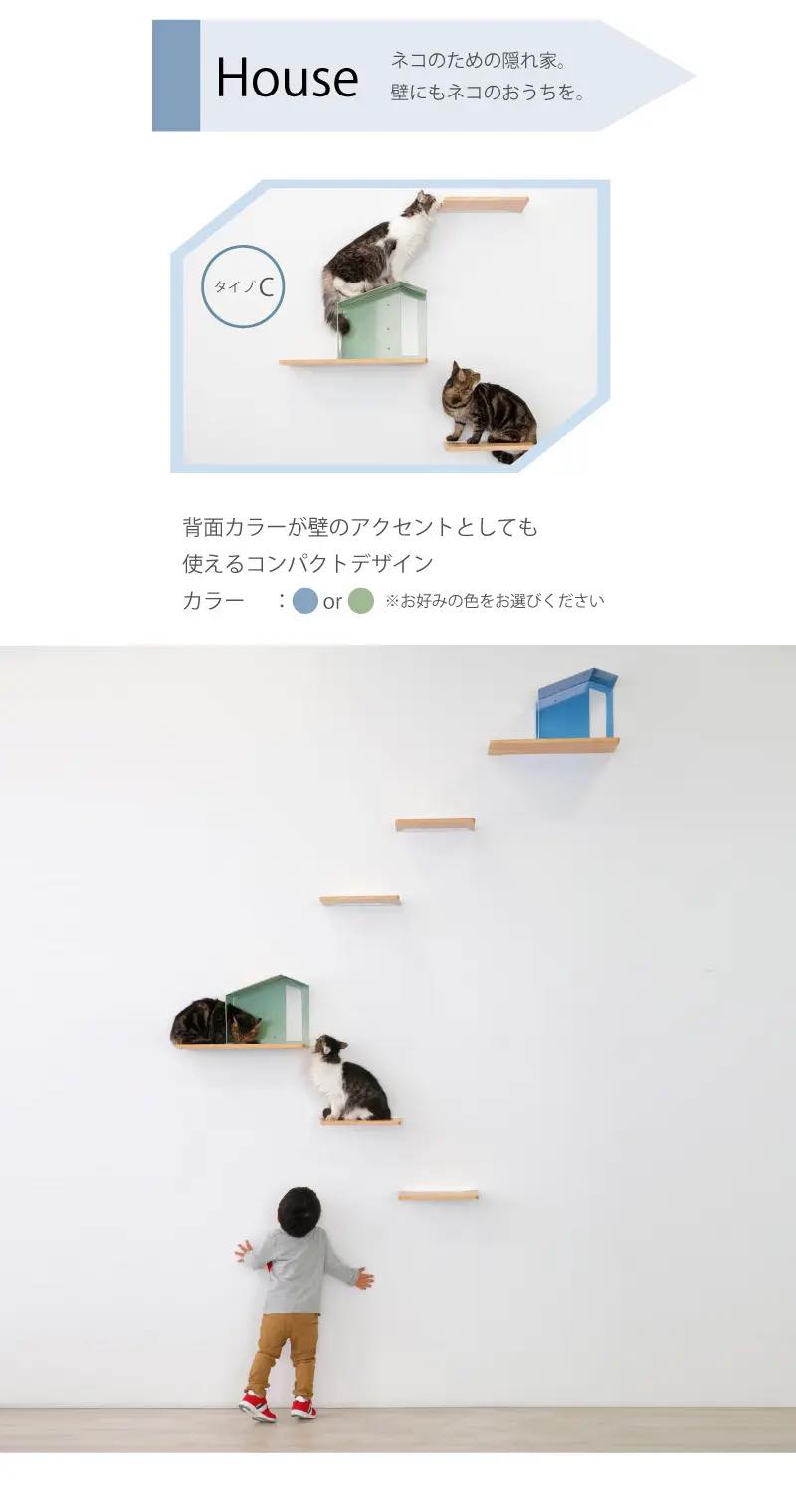 猫と人が心地よい距離感を保ちながら共に暮らすための、壁に取り付けるキャットシェルフです。