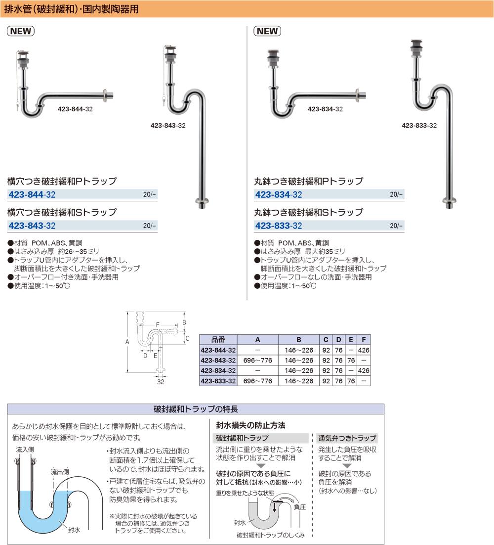 カクダイ【横穴つき破封緩和Pトラップ(423-844-32)】423-844-32