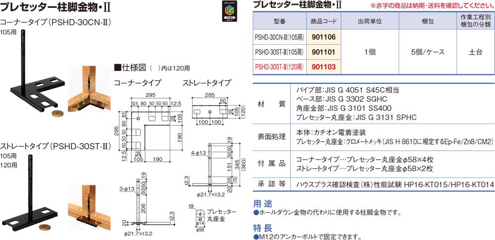 BXカネシン【プレセッター柱脚金物・Ⅱ(105用)】PSHD-30CN-Ⅱ~他