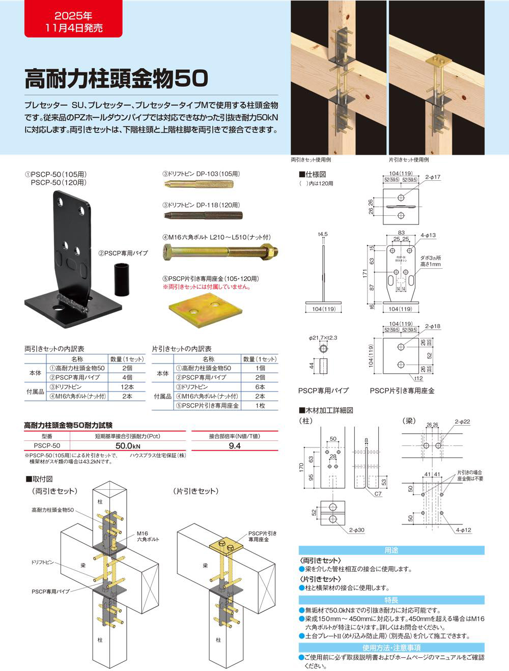 BXカネシン【高耐力柱頭金物50<両引きセット>(120用)】PSCP-50・150W(120用)~他