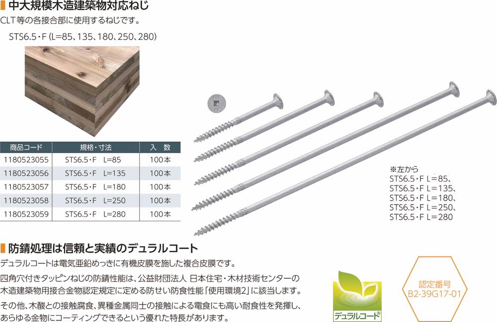 カナイ【Zマーク 四角穴付きタッピンねじ 中大規模木造建築物対応ねじ】STS6.5・F85/1180523055~他