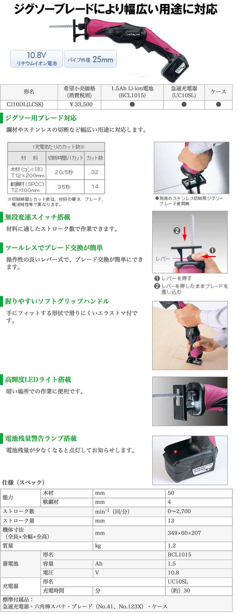 HiKOKI(ハイコーキ・日立工機)【CJ10DL(LCSK) コードレスミニソー】CJ10DL(LCSK)