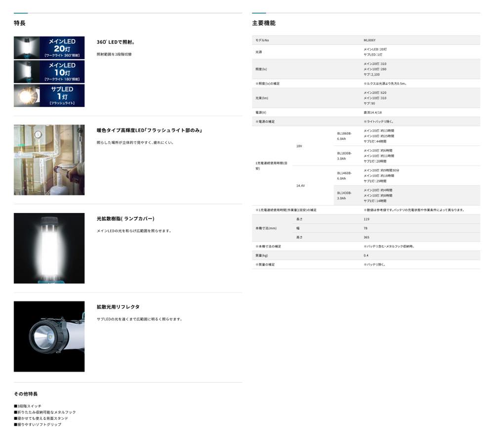 マキタ【ML806Y 充電式LEDワークライト】ML806Y