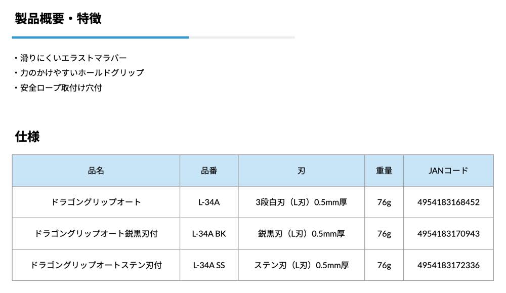 規格: L-34A BK 刃: 鋭黒刃(大) カラー: 黒 |