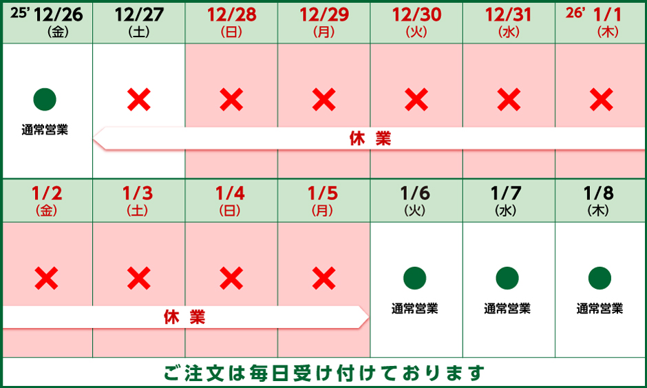 12/26(金)は、15時までのご注文は、在庫商品のみ当日出荷、