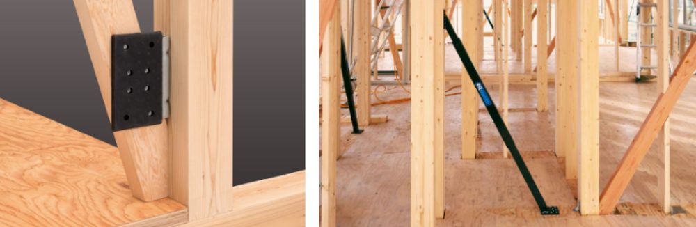 既存の筋かい金物に代えて使用でき、特別な設計が不要で、通常の筋かい金物のようにビス止めするだけの簡単施工です。