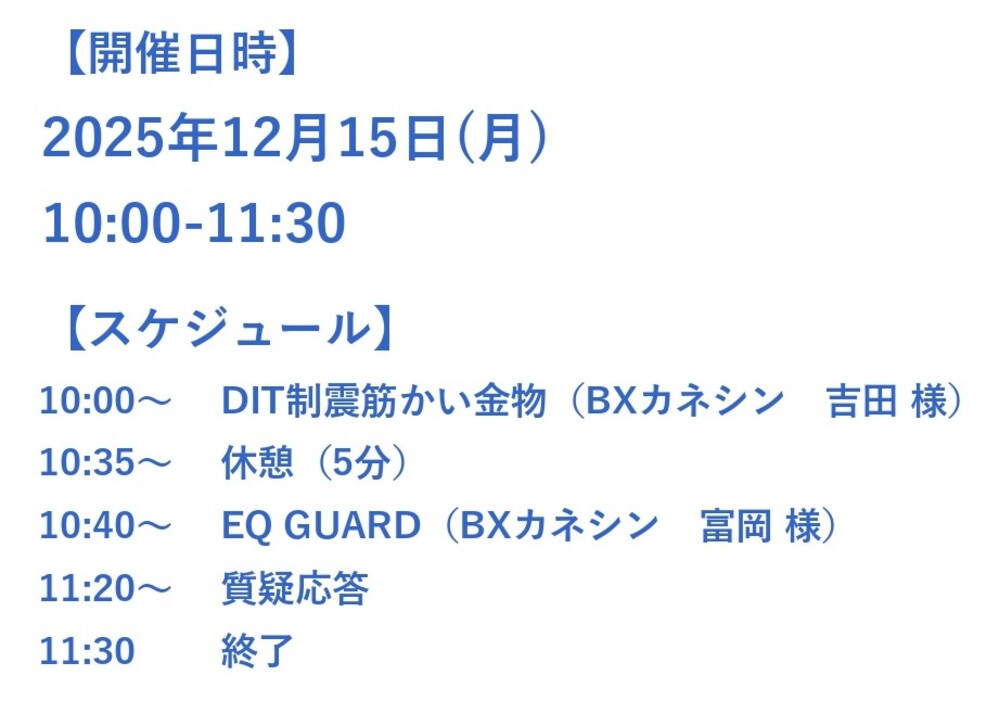 12/15WEBセミナーのご紹介:第2回BXカネシンの制震装置オンラインセミナー