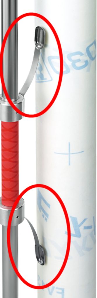 2本のスプーン型の部品が、ロールのたわみを確実に抑えます。