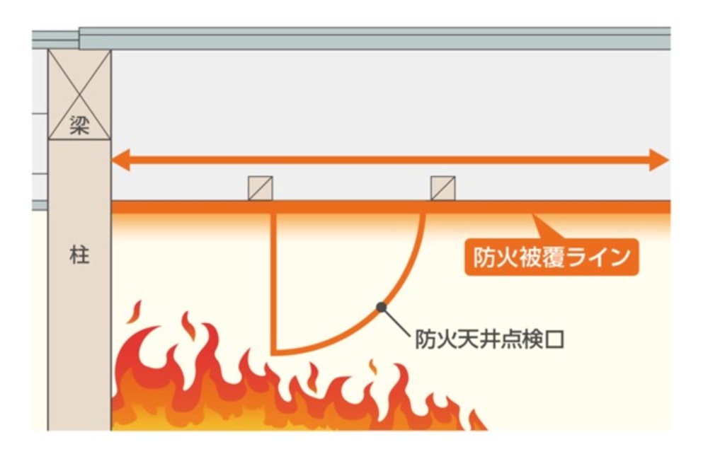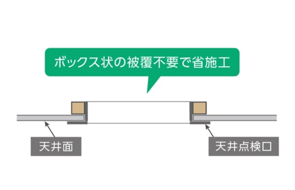 本製品は、天井点検口単体で無開口相当の性能を確保できるため、ボックス状の防火被膜を設ける必要がありません。