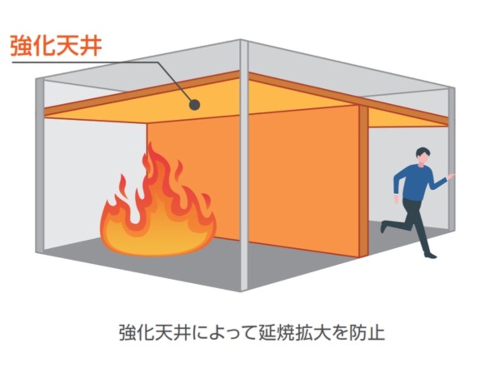 60分準耐火構造に対応し、強化天井仕様にも設置可能。