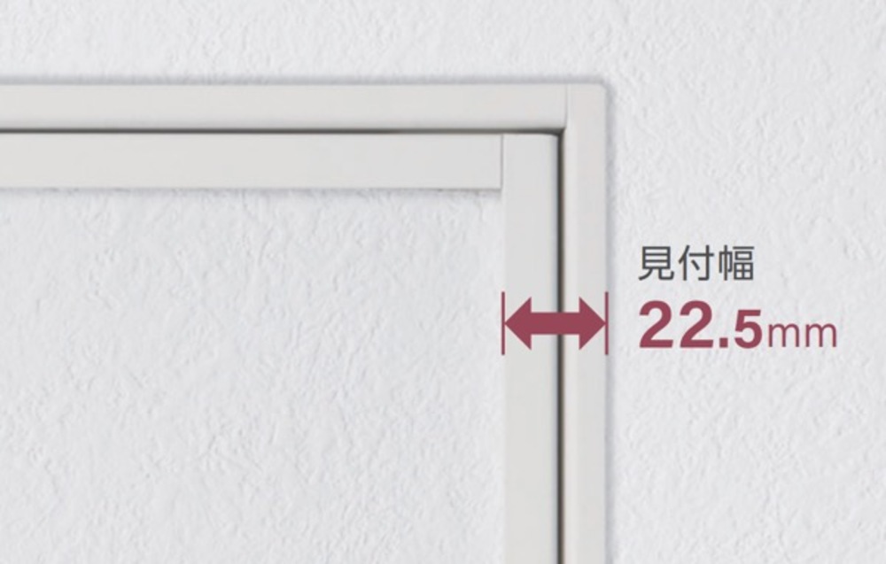 45分準耐火構造対応品と比較して、見付け幅が22.5mmと細く、スリムな見た目で空間の雰囲気を損ないません。