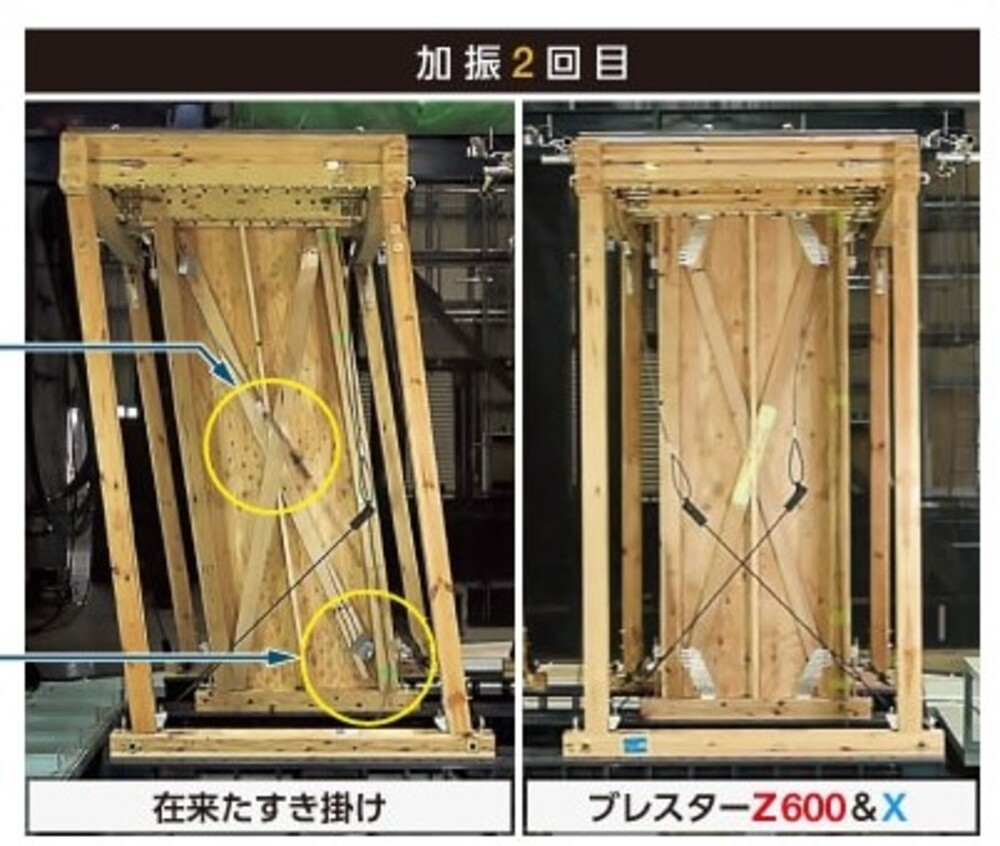 さらに、専用金物「ブレスターZ600」と組み合わせれば、真壁仕様でもダブル筋かいの施工が可能。