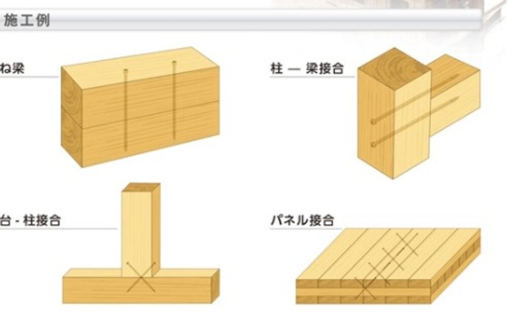また、接合金物やボルトと違いビスを片側から打ち込むだけでなので、施工の手間を大幅に軽減します。