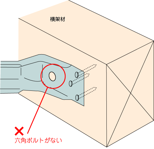 ビスが2本不足しています。接合具の不足は金物の性能が確保 できません。 必ず付属のビスを用います